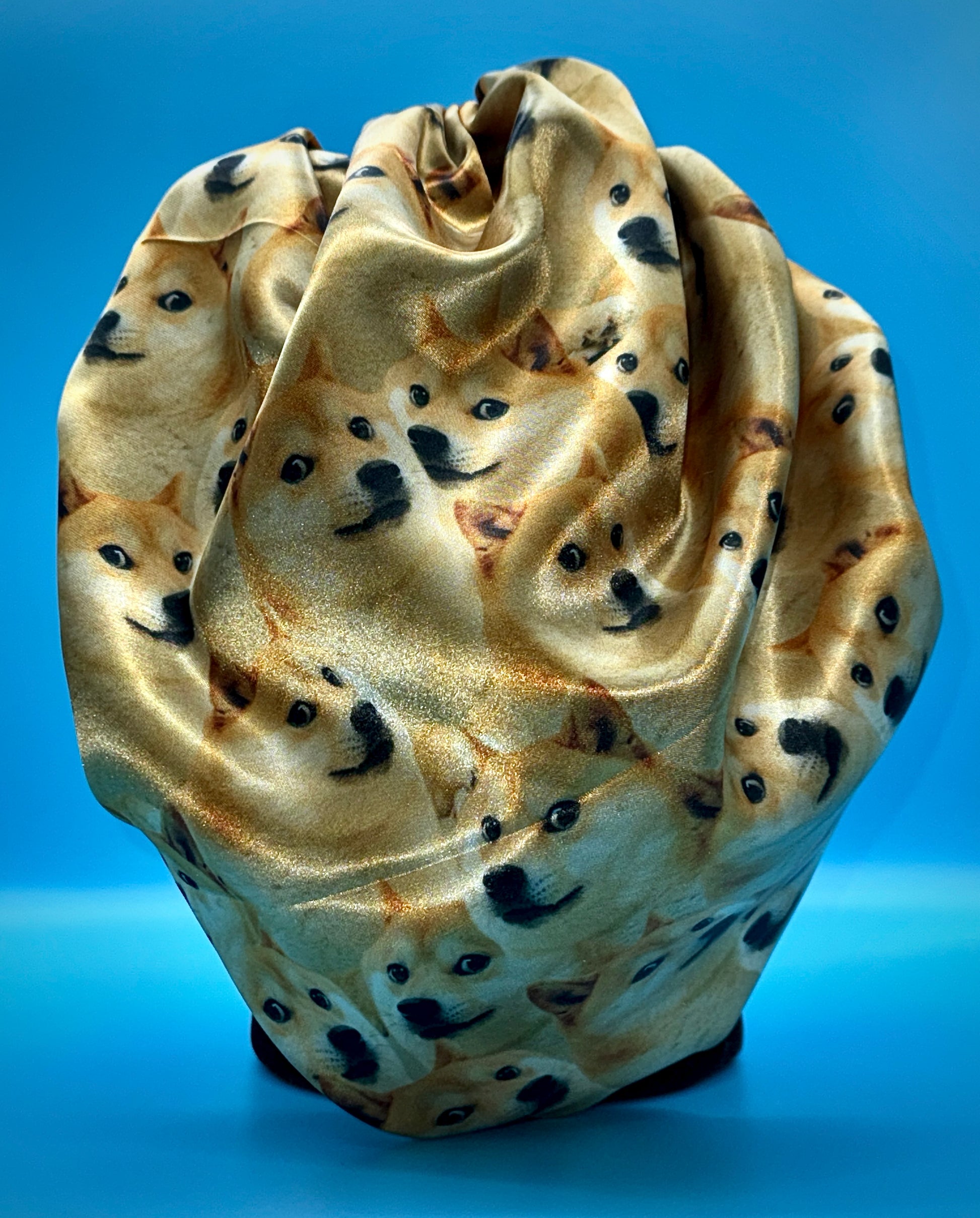 Satin Bonnet | Doge Meme Shibe Print with Yellow Headband and Green Lining